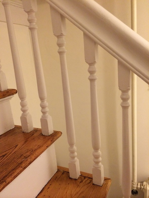 I’m still on the fence about stripping the bannister down to the original wood. I have see my number 1 gal the Rehab Addict Nicole Curtis do it. But, it was about a 3 day process so I couldn’t commit to that this weekend. So the banister will be for another day.