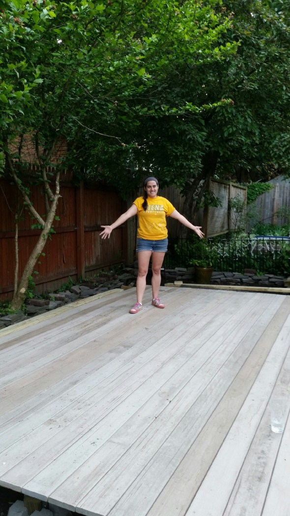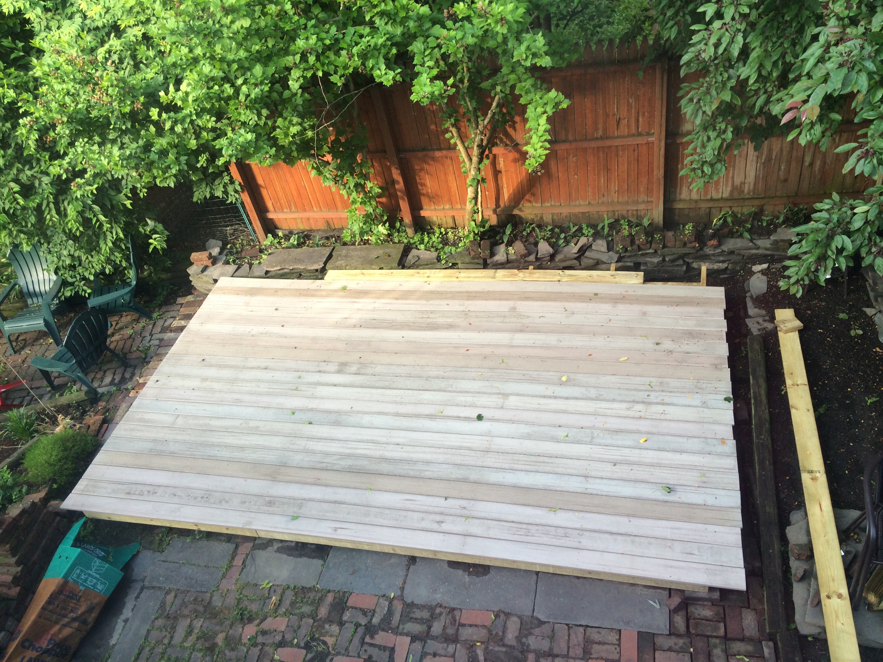 In the past month, I’ve really been hitting the Pinterest boards hard looking for some backyard inspiration. I can now say that it has finally seen some real progress and construction! I had some professionals come and look at it, designed and the re-designed ideas, and after a serious conversation with my parents settled on turning the dirt pit into a floating deck. A floating deck has all the great properties of a regular deck, level space, large unobstructed area, with none of the pesky time and money consuming permits the city makes you do. Since it’s not really off the ground, it’s not the same type of liability.